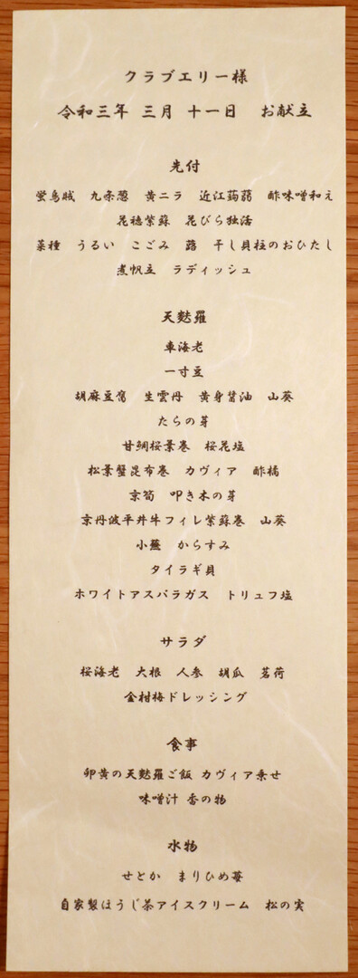 ちょっとゴージャス路線のクラブエリー第2木曜、3月は祇園の「ぎをん 藤」さんにお願いしました。