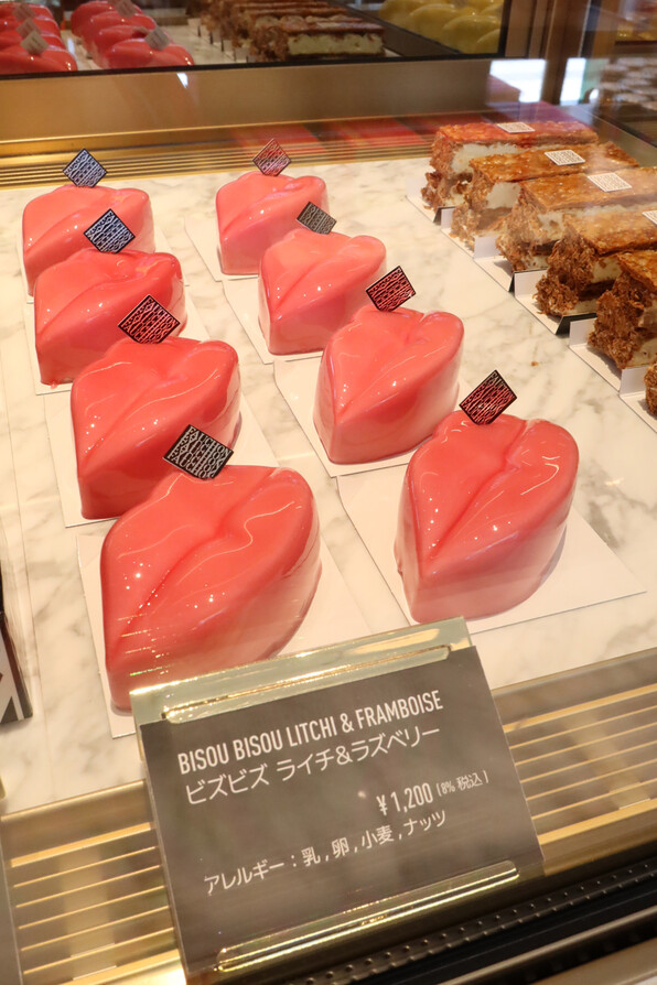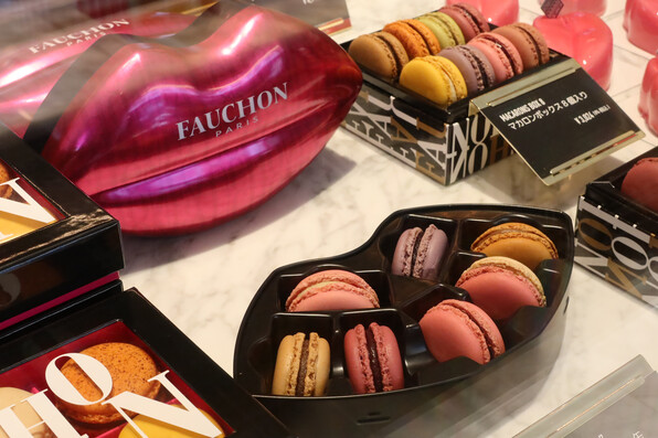 ●をを、看板菓子ビズビズ(Bisou-Bisou)を思わせる唇オブジェに、こちらも看板であるマカロンです。