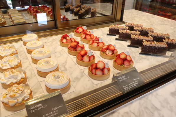 ●タルト・シトロン、タルト・フレーズ、ミルフイユなど生菓子が入ったケースです。