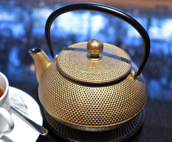 ●お茶を入れて運ばれたこの黄金色の急須、美しくて好きでした。