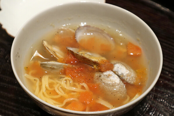 ●最後に麺です。あさりとトマト、手打ち麺。スープ全飲みしました。