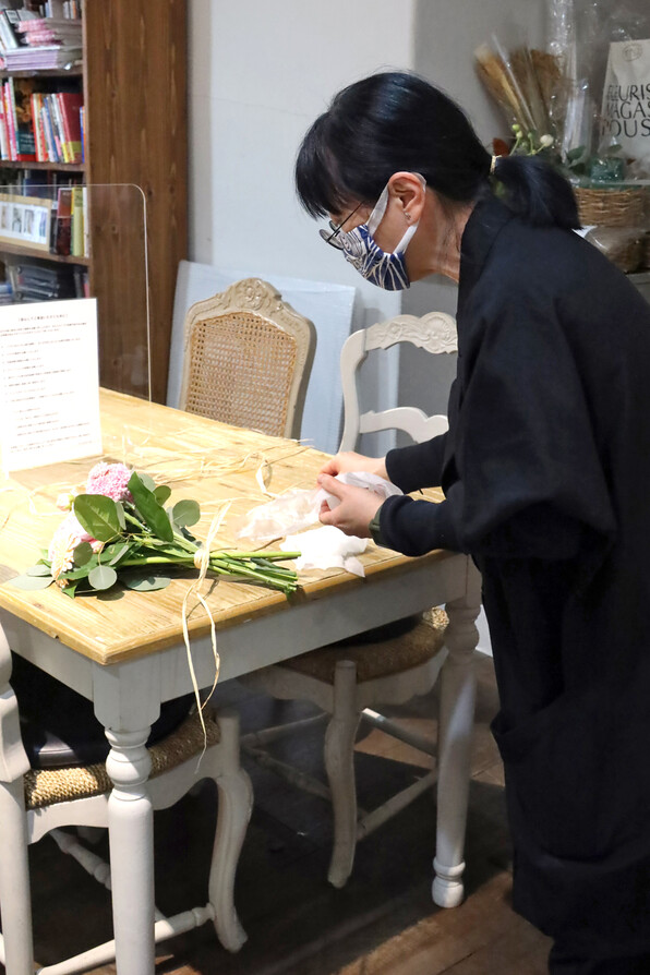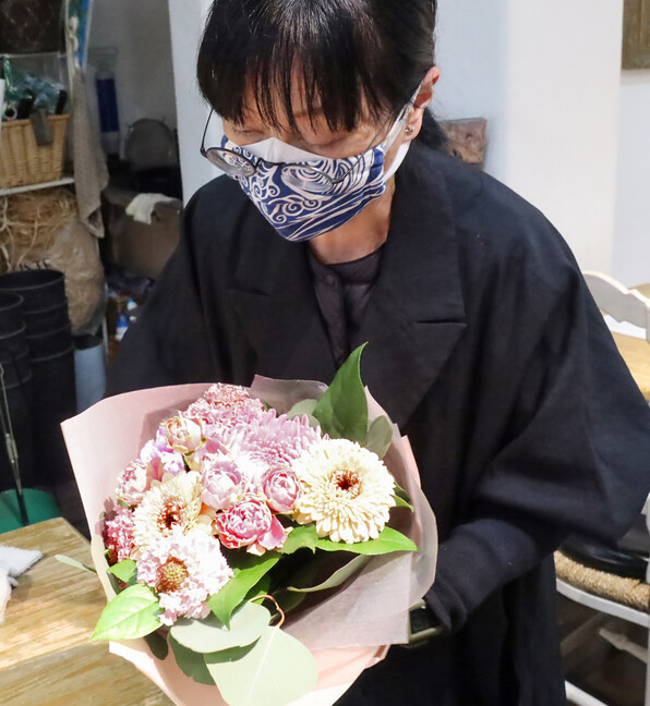 ●お客さまから受注したブーケを作る美奈ちゃんです。