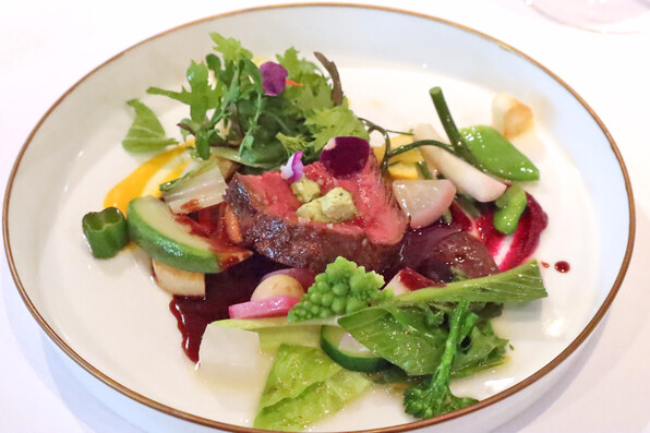 ●短角牛(バターはカフェドゥパリ)、50種類以上の野菜と。