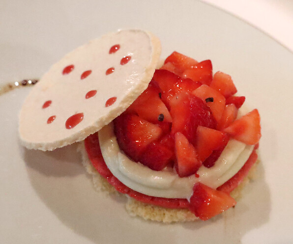 ●デセールはチャイと柑橘の冷菓によもぎテリーヌ、その後これで、いちご(紅ほっぺ)のヴァシュランでした。