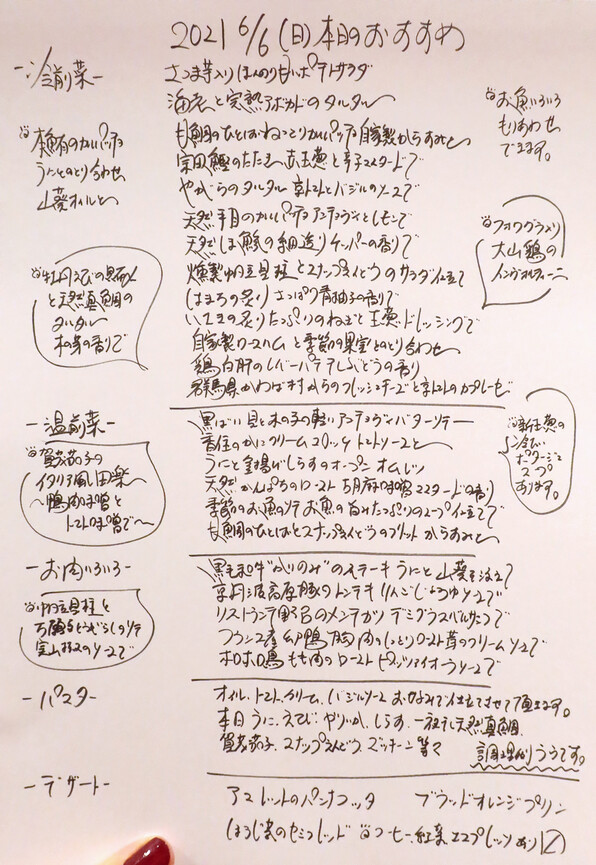 2021年6月6日(日)まだまだまだ緊急事態宣言下かつ禁酒令のもと、ゆらゆらと出かけて、18時45分~20時 「リストランテ 野呂」248回目。