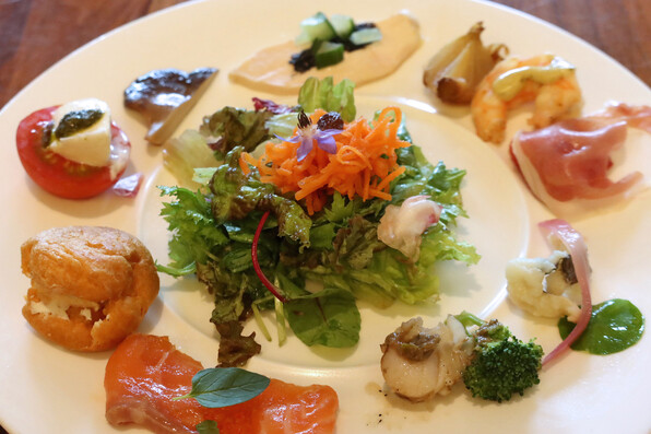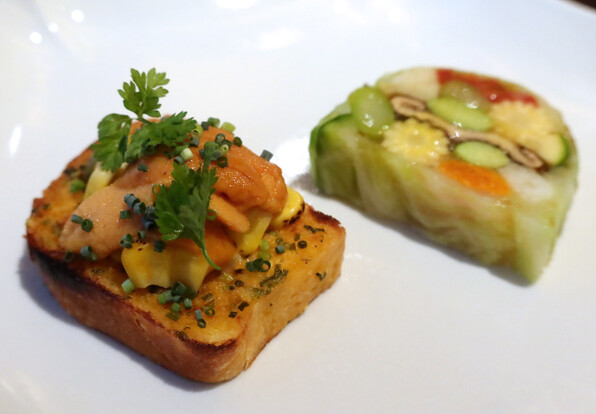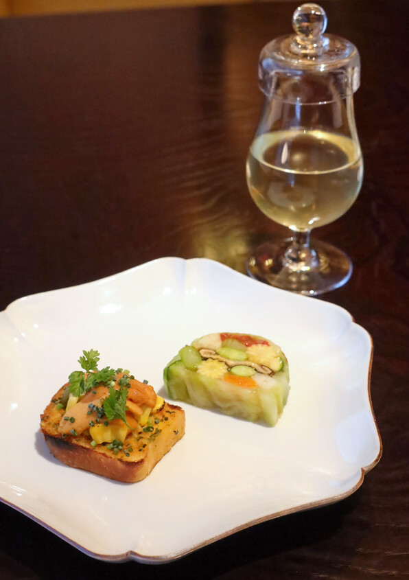 ●ブリオッシュに雲丹バター(旨旨旨、)、野菜テリーヌにはちょっと日本風に炊いた椎茸がアクセントに組み込まれたりしていて、ユニークでした。おいしかった(T_T)(T_T)