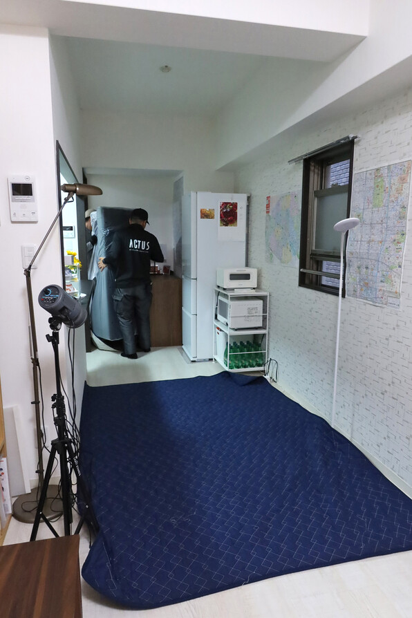●2か月近く待っていた、オーダーした家具が届きましたが・・・(アクタスの配達員の方に運び込まれる之図)