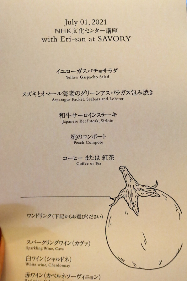 ●さて、7月の第1木曜のNHK文化センター講座で出していただいたお料理です。