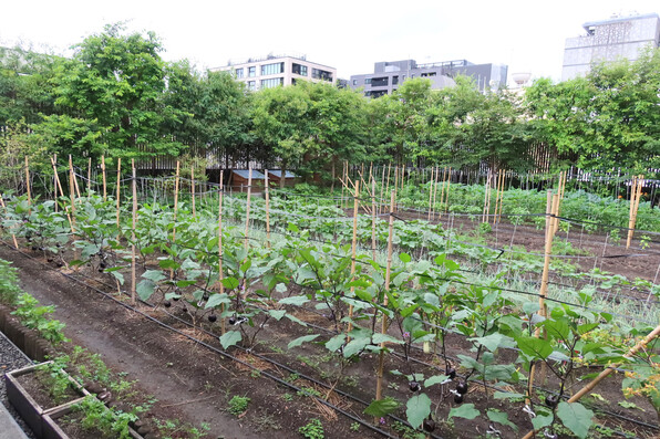 窓越しにこの農場が望めます。洛中の、ものすごく街なかにあってこの風景は贅沢です。