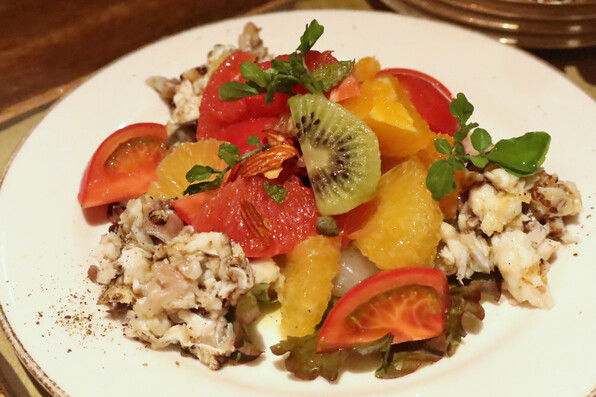 たっぷりのトマトやフルーツと共にねっとり旨い鯛を堪能。