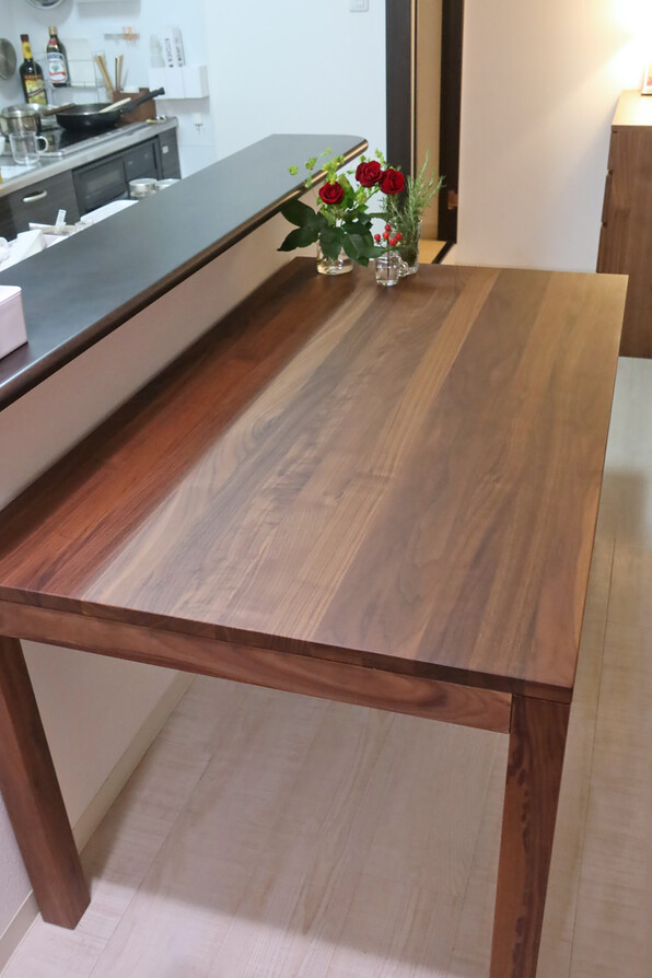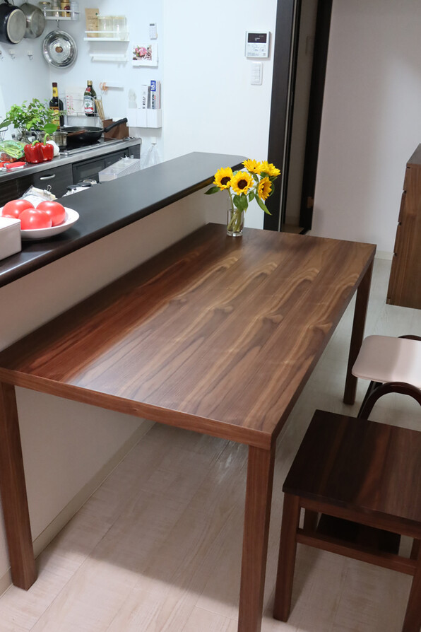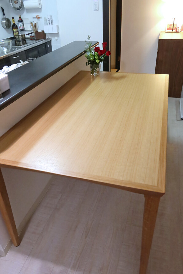 ●それで、がらりと考え方を変えて、秋田木工さんというメーカーのナラ材、ホワイトオーク色のテーブルを発注。