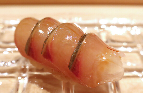 先付はこれだけ。わたしはこういうのが好きです。にぎりの前にいろいろあると、お腹ふくれてお寿司食べられなくなるのです。