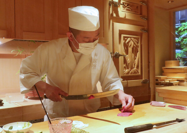 この包丁でこの絶妙に旨いお寿司が生まれるのだなあと。