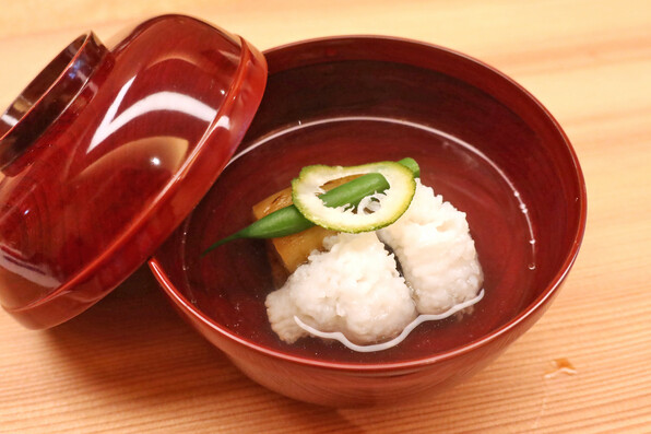 このお椀の吸い地の、ぴたーーーーーっと決まっていること、格別の風味と思いながらいただきました。
