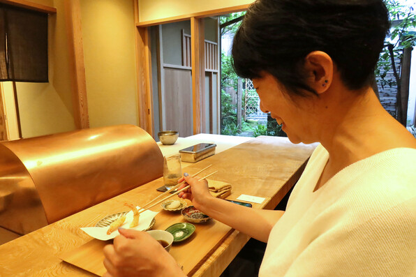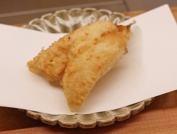 ・・・その前に、本来なら鮎の焼き物など一品入るということでしたが、今回は時間のリミットがあり、それをパスして天ぷらに進みました。