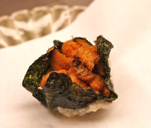 ●をを\(^o^)/ 雲丹の海苔包みの天ぷらです。