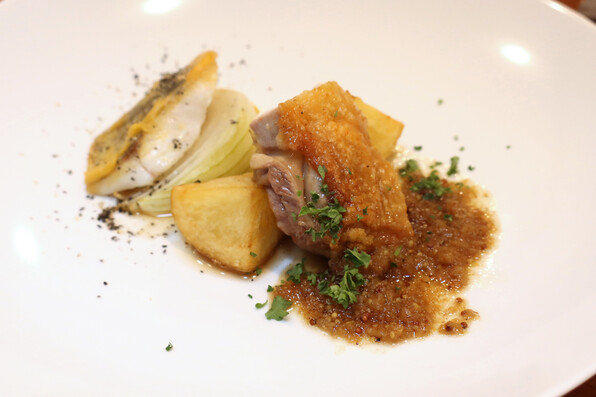 1)大鰐シャモロック 新生姜で作ったジンジャーソースと。