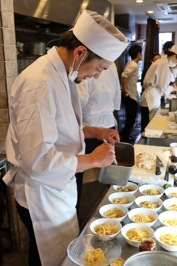 ●冷麺を用意するとしちゃん=大針俊哉さんです。