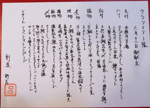 アップできていなかった6月11日(金)の記録、「割烹 野呂」。