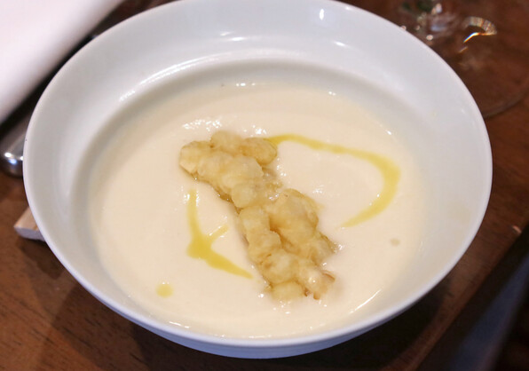 ●白とうもろこしのスープ、白とうもろこしのフリット。