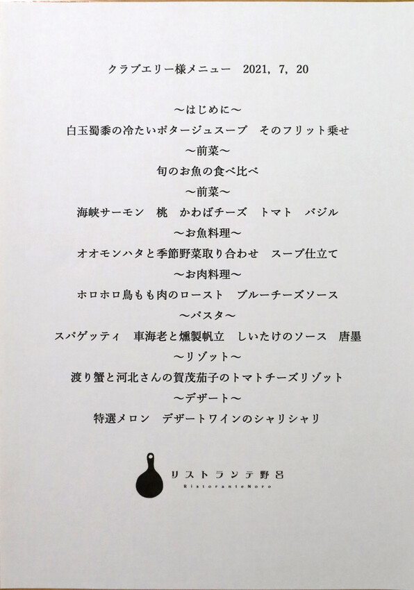 「割烹 野呂」だけではなく「リストランテ 野呂」をの声に応えて開催\(^o^)/