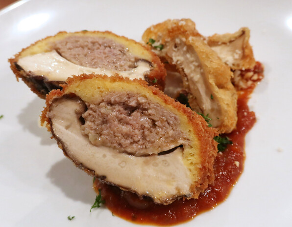 ●神山しいたけ、椎茸肉詰めフライ 食べるウスターソースと