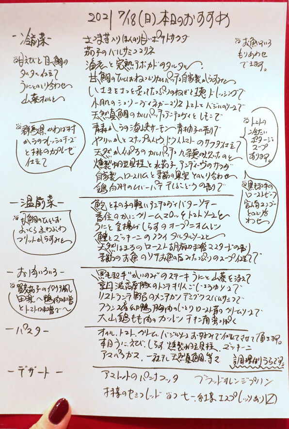 2021年7月18日(日)、19時半~21時 「リストランテ 野呂」255回目。