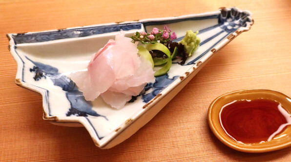 ●古染付のお皿に、甘鯛を蒸したもの。これが夢のようにふわふわふわ。