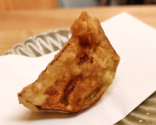 ●田中とうがらし。中にそうめん南瓜、ピータン、わたり蟹。豆鼓のソースと。