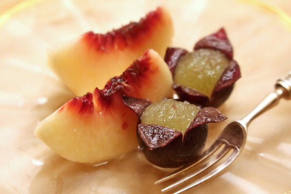 ●さんざし、梅シロップのパットドゥフリュイ、胡麻団子、ナッツに糖衣をかけたもの。