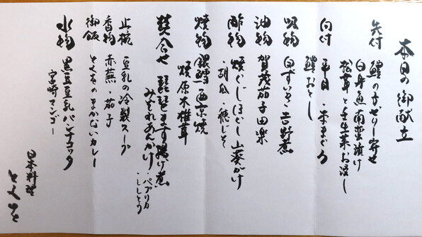 8月5日(第1木曜)NHK文化センター講座のお昼で「日本料理 とくを」さんに伺いました。