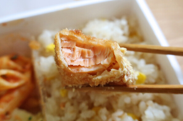 ●お弁当は、とりわけ嶽きみたっぷりのとうもろこしご飯がおいしかった、そして青森海峡サーモンフライがおいしかったです\(^o^)/\(^o^)/