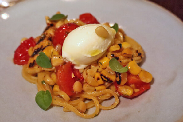 とうもろこしの粒粒感にねっとりしたリコッタのコントラストがすてき、リングイニじたいが問答無用で旨い、色きれいということで、また飛んでいってこれいただきたいと思います。