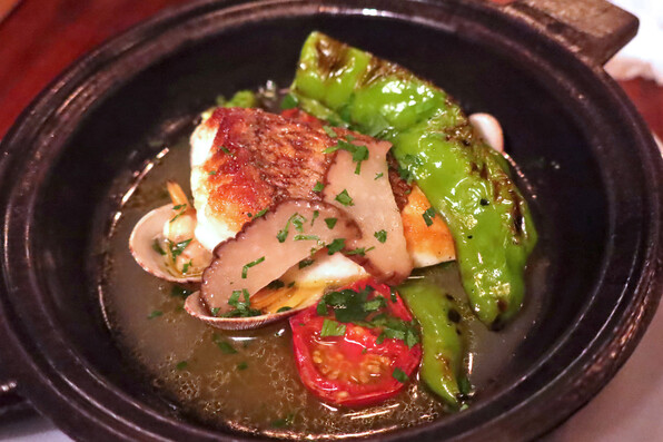 ●アクアパッツァの「KYOTO BISTRO」風、これも大好きな一品。ケイパーやオリーヴを使わず、山椒といぶりがっこを使って独自の風味を出しています。これが旨いったらないのです\(^o^)/\(^o^)/☆☆☆