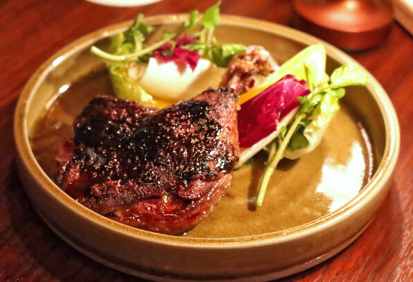 鴨肉じたいはコンフィらしくほぐほぐとほぐれて食感心地よく、しかしどうにも和風なのがおもしろい\(^o^)/\(^o^)/なんてオリジナルなおいしさ\(^o^)/\(^o^)/☆☆☆
