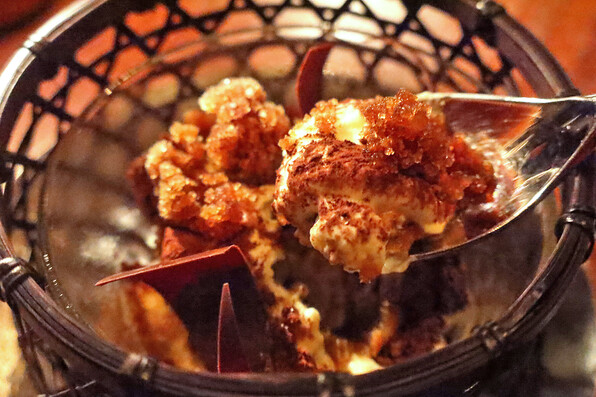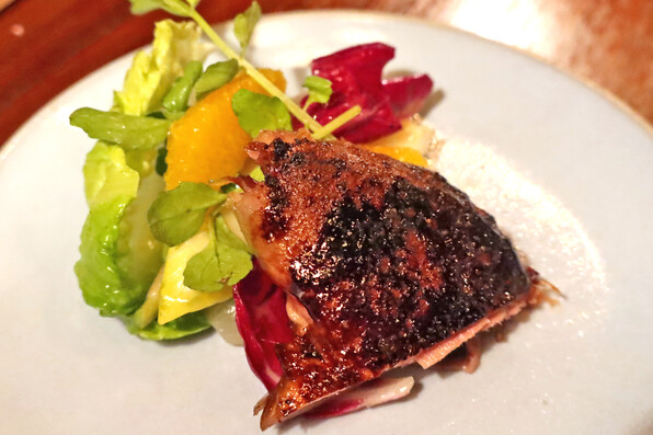 これがたまり醤油とメイプルシロップを使った照り焼き風でとてもユニーク、黒七味が効いていました。