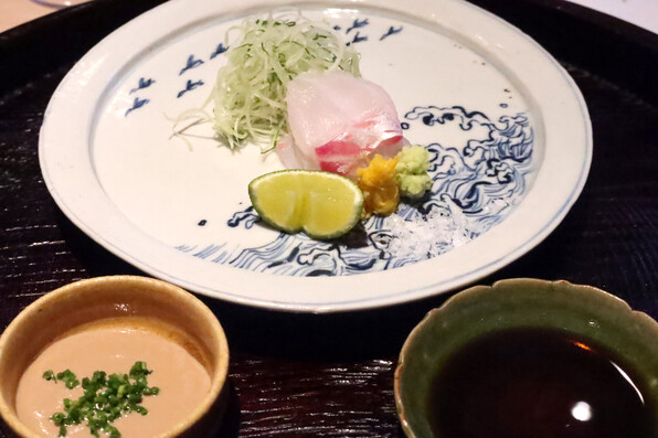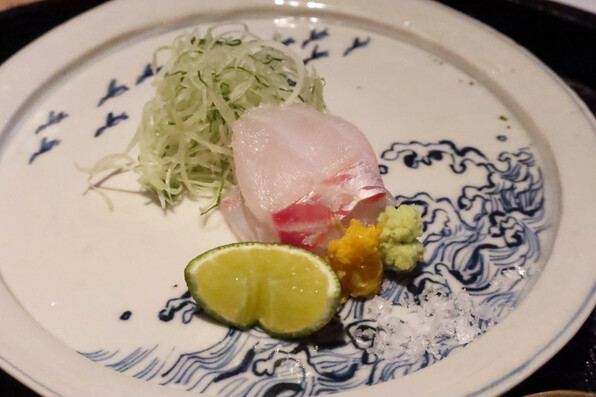この波模様のお皿がまたお造りにあまりにぴたりと合っていて、ほんとよいです。