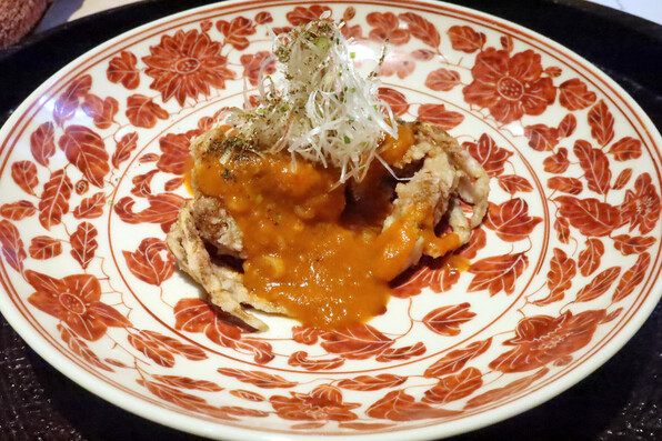 ●ソフトシェルクラブの、上賀茂のトマト餡(=チリソース)