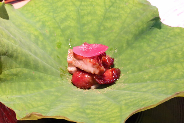 ●叉焼の八丁味噌炭火焼き 玉ねぎ、新れんこん甘酢漬け