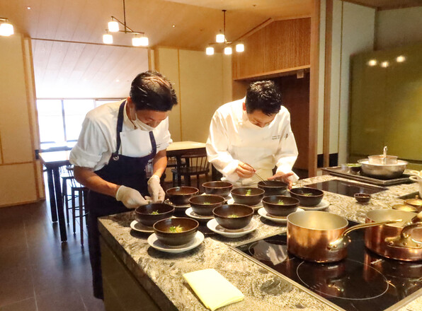 ●左から、パーク ハイアット 京都 総料理長の井料剛さん、料理長の平久江裕(ひらくえゆたか)さん。