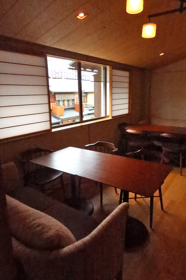 ●カジュアルな感じの「KYOTO BISTRO」さん1階と較べて、2階は木目の美しさを随所に感じさせるシックな造りです。