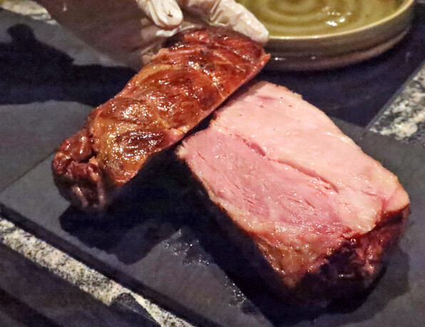 これだけ見ると豚らしく、ワイルドな感じもしますが、実はまったく予想をくつがえす食感と味だったのです。