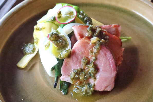 優美な、としか言えない舌ざわりの豚肉がすてきでした。グリルといいつつ、18時間真空調理でじんわり火を入れた後に炭火で焼いて仕上げられたそうで、香ばしさもありながら、歯の要らない柔らかさで溶けるようでした。あまりにおいしい美しい☆☆☆