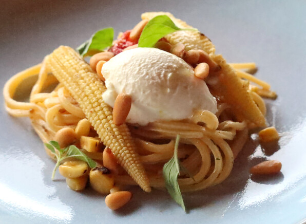 とうもろこしの香りと粒粒、フレッシュ麺の食感がたまらない定番メニューのリングイニです。