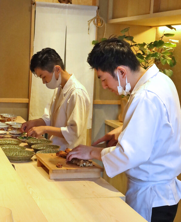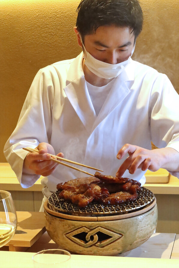 ●店主の酒井研野さん、堂々たるものです。「普通の和食では埋もれてしまうと思った」と、「京、静華」さんでの修業の成果を生かした献立でわたしたちを楽しませてくれます。この叉焼がまた旨いのです(T_T)(T_T)