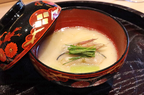 ●白味噌仕立てのくじらのお椀です。