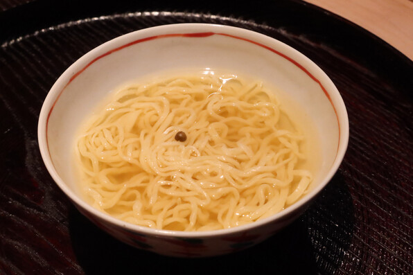 ●澄んだスープで麺をつるつるといただき、これで締めです。