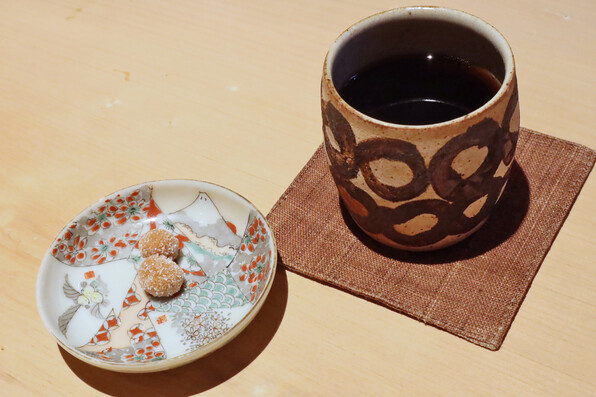 ふたりでのれんから顔出している図、ということで、こんな酒器をお客さまが作って贈ってくださったのだそうです。