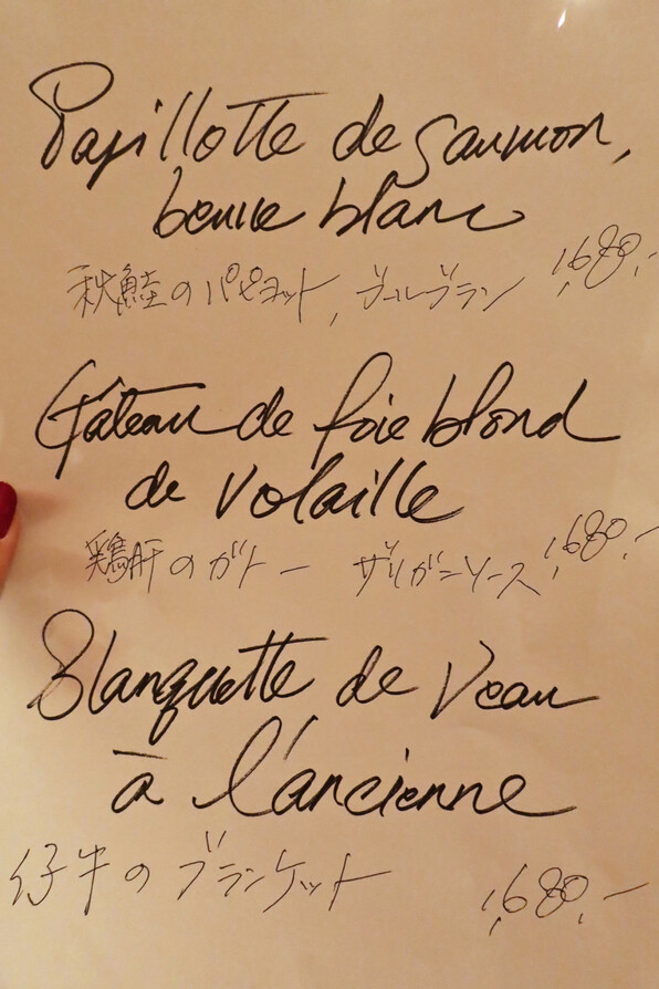 「オ・タン・ペルデュ」を一旦閉店されて、店主だった松井知之さんが今「ブション」で調理もサーヴィスもされていて、(サーヴィス玉ちゃんは変わらずいらっしゃいます(^o^))よく知っているお皿を別物のように供してくださいました。