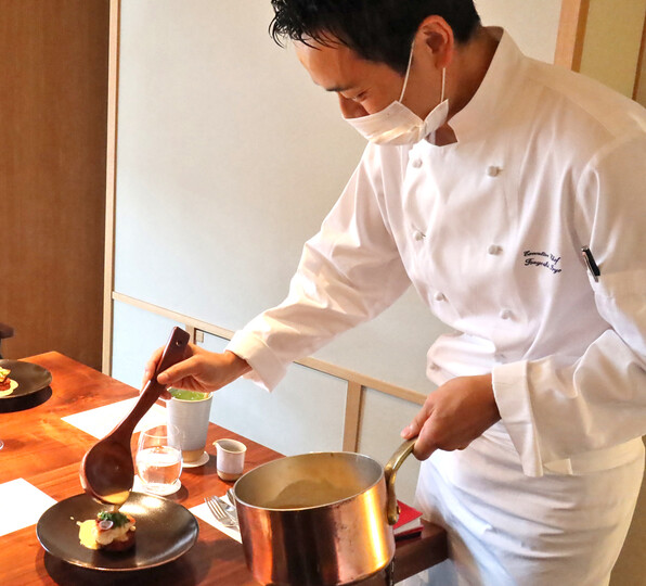 ●若き俊英 井料剛さん、まめにテーブルを回って料理の説明をしてくださいます。